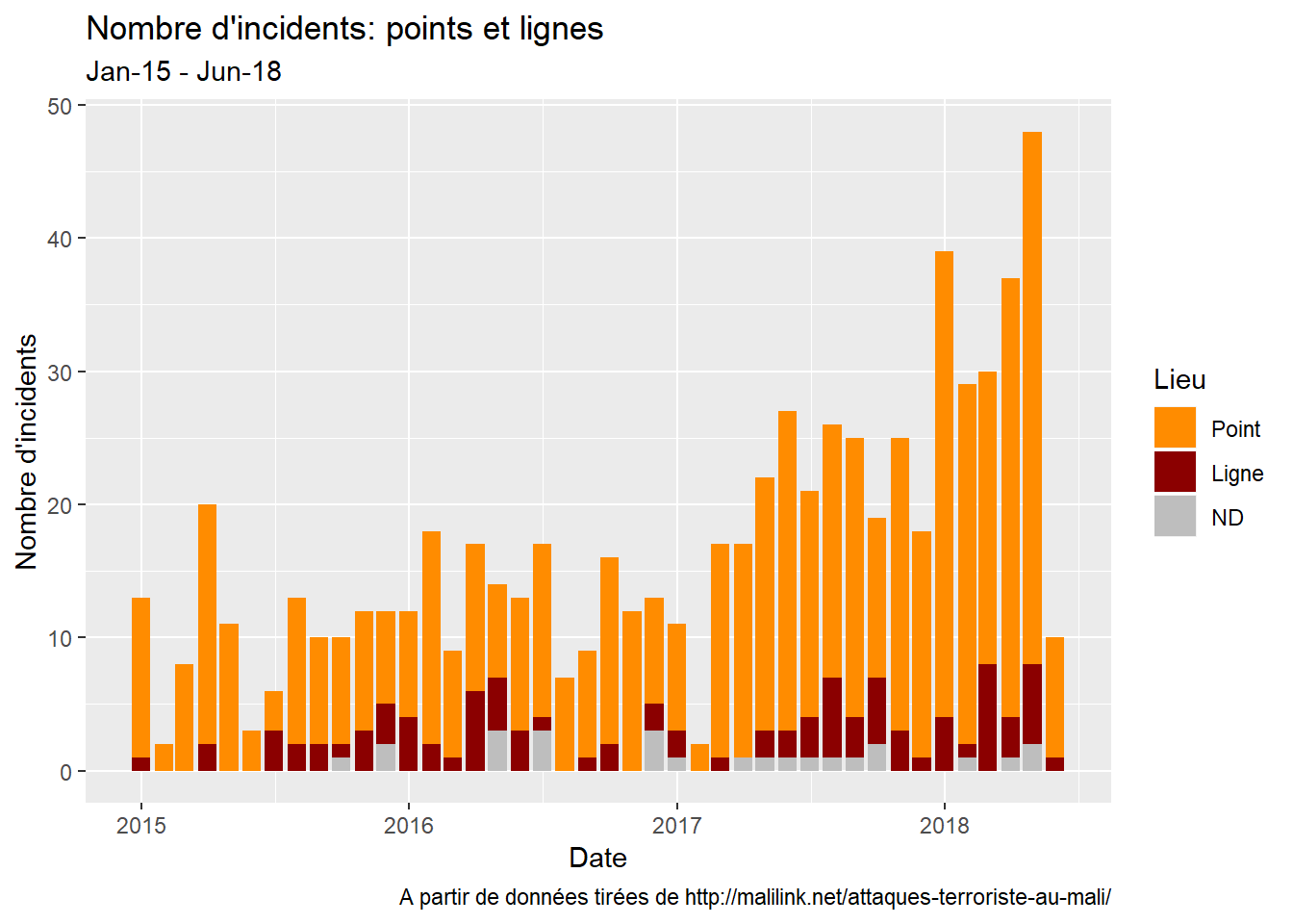 Après d’innombrables visites sur ce post, j’ai réalisé que les applications shiny ne marchaient pas toujours. Hé, que puis-je dire ? C’est le prix à payer quand on veut du gratuit! Enfin bref…j’ai décidé de retourner à mon ancienne flamme - ce bon vieux ggplot2 - et d’inclure quelques graphiques pour avoir quelque chose à regarder au où les applications shiny ne seraient pas disponibles.