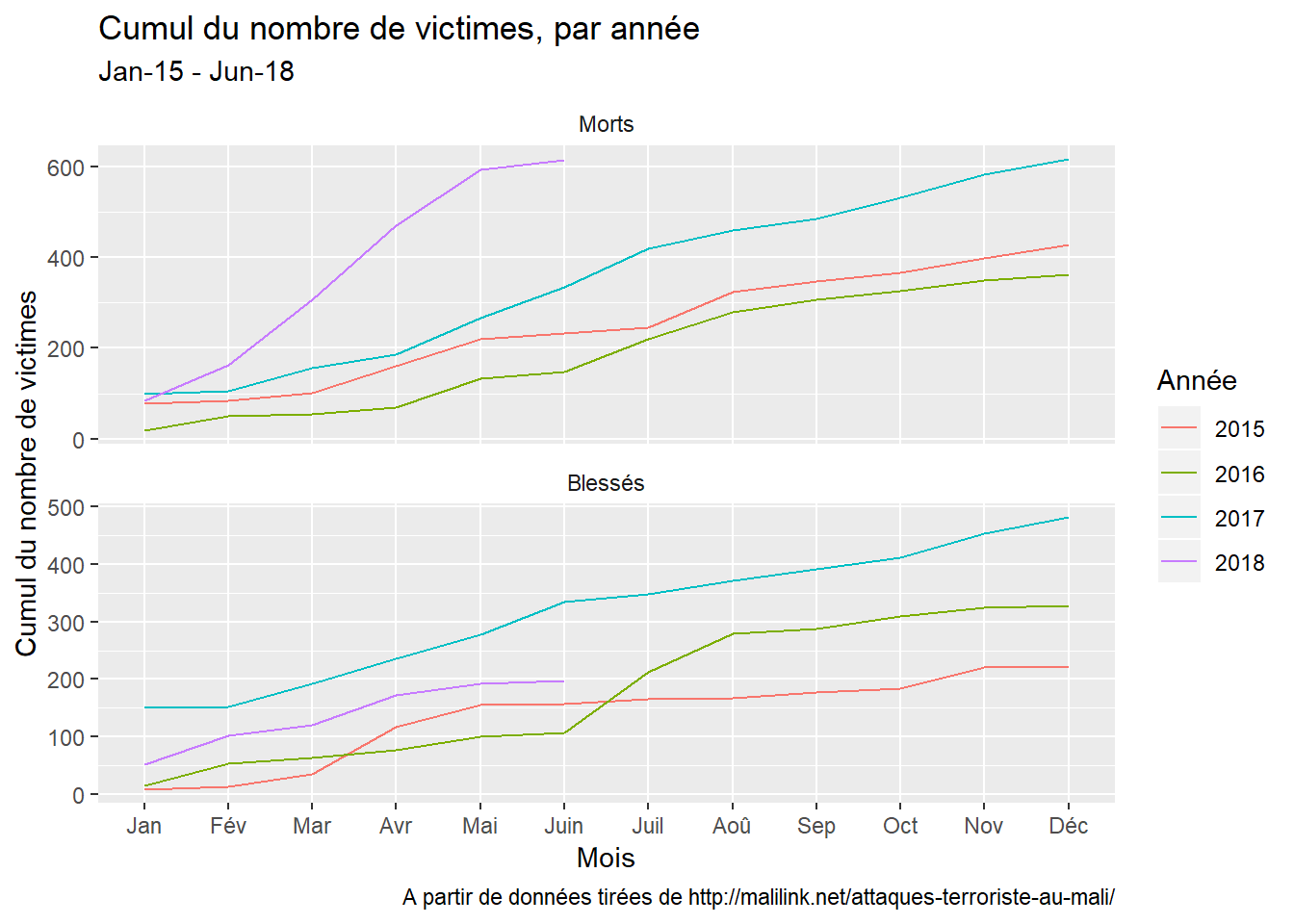 depuis le début des séries, qui est de 2015 (celà aurait été très utile d’avoir une série qui remontait jusqu’à 2012) ;